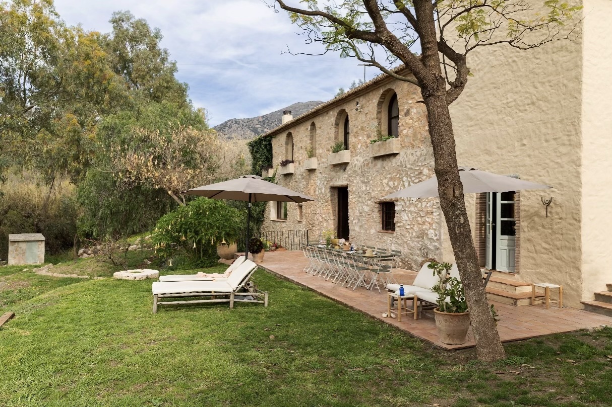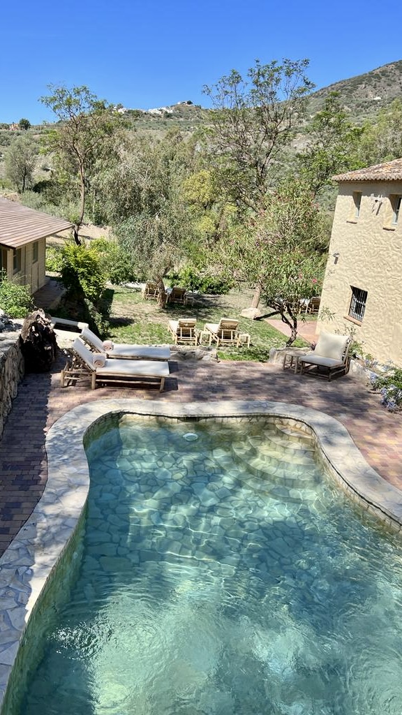 Ruimte wordt ook zeker geboden door de 7000m2 grote tuin waarin zich diverse plekjes bevinden om samen te zijn of je privacy op te zoeken. Er is een organisch gevormd zwembad, een natuurlijk waterbassin, vele ligbedden onder de parasols en een grote buiten eettafel. Bij goed weer zullen de massages en meditaties ook buiten gegeven worden. Naast het huis loopt de Guaro-rivier en er zijn wandelpaden in de buurt. Niet ver ligt het dorp Periana en andere witte dorpen waar de tijd stil gestaan heeft en met een half uur rijden sta je op het strand van Torre del Mar.